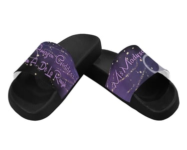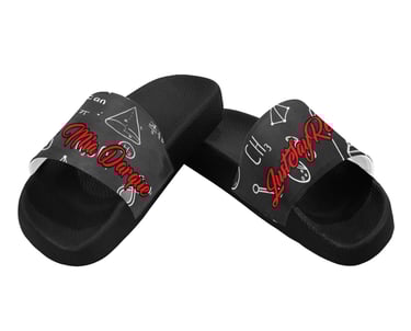 These are super soft pj's with a cartoon image of her on the back. The matching slides have the same fun design she requested. Every single time she washes the pj's they get softer. She said that she cleaned the slides with basic hand soap & a paper towel.